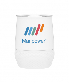 12 oz double wall 18/8 stainless steel thermal tumbler with copper vacuum insulation, push-on lid, matching swivel closure, and removable silicone base.