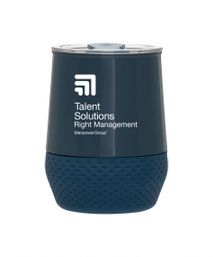 12 oz double wall 18/8 stainless steel thermal tumbler with copper vacuum insulation, push-on lid, matching swivel closure, and removable silicone base.