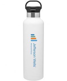 24 oz powder coated double wall 18/8 stainless steel thermal bottle with copper vacuum insulation, threaded gear-shaped insulated lid and carrying handle Complies with FDA, Prop 65. 11.25" H x 3" W