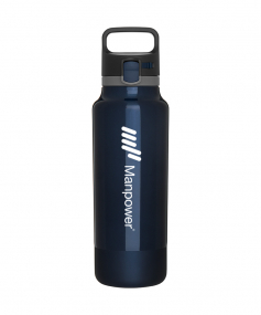 25 oz double wall 18/8 stainless steel thermal bottle with copper vacuum insulation, threaded one-touch push-button lid, locking mechanism, carrying handle, and rubberized base - patent pending - gift box included; Hand wash recommended; Do not microwave; 11 h x 3 w ; 739mL.