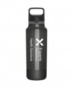25 oz double wall 18/8 stainless steel thermal bottle with copper vacuum insulation, threaded one-touch push-button lid, locking mechanism, carrying handle, and rubberized base - patent pending - gift box included; Hand wash recommended; Do not microwave; 11 h x 3 w ; 739mL.