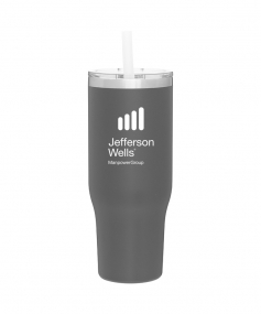 40 oz double wall 18/8 stainless steel thermal tumbler with copper vacuum insulation, stainless steel rim, dual-purpose push-on clear lid, matching sliding closure, flexible wide silicone straw, and powder coated finish