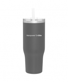 40 oz double wall 18/8 stainless steel thermal tumbler with copper vacuum insulation, stainless steel rim, dual-purpose push-on clear lid, matching sliding closure, flexible wide silicone straw, and powder coated finish