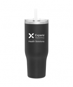 40 oz double wall 18/8 stainless steel thermal tumbler with copper vacuum insulation, stainless steel rim, dual-purpose push-on clear lid, matching sliding closure, flexible wide silicone straw, and powder coated finish