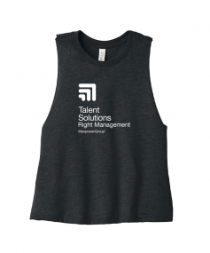 52% combed and ring spun cotton, 48% polyester; 32 singles; Raw arm hole; Racerback; Cropped; Side-seamed; Tear away label;