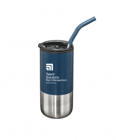 The Bondi Double Wall Tumbler w/Straw holds 18oz and features a silicone straw head and thermoplastic liner. Once beautifully decorated, this stylish tumbler will have everyone’s eyes on your logo.