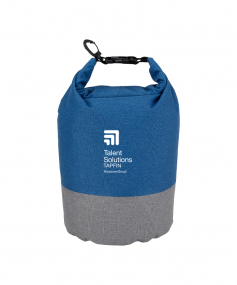 Keeps your items dry and comes in a chic two-tone design. It has a roll top closure with a buckle to connect to other bags and a carabiner clip to connect to a backpack or tether to a raft rope. Made from heathered 300D polyester, it has a 5 liter capacity and can float if dropped in water. Complies with Prop 65. 7" W x 13" H x 7" D