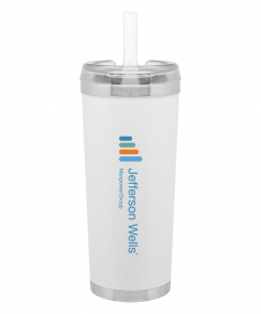 24 oz double wall 18/8 stainless steel thermal tumbler with copper vacuum insulation, stainless steel rim and base, threaded Eastman Tritan lid, snap closure, straw opening, and flexible wide silicone straw.