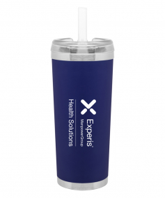24 oz double wall 18/8 stainless steel thermal tumbler with copper vacuum insulation, stainless steel rim and base, threaded Eastman Tritan lid, snap closure, straw opening, and flexible wide silicone straw.
