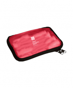 Vinyl case with zipper includes a 12 hour safety light stick, 10 latex-free bandages, 5 snip bandages, two 2" x 3" adhesive pads, 2 knuckle bandages, 5 antiseptic towelettes, 5 first aid cream packets, 2 non-adhesive pads, 1 gauze roll, 1 roll of adhesive tape, and 1 first aid guide.