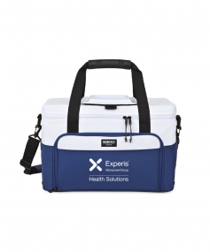 Features MaxCold® insulation with 25% more foam to keep drinks and food cooler longer. Dual zippered opening to large main compartment. Top hatch for easy access to contents of cooler. Comfortable, rubberized top handles secure together for easy carrying. Deep, gusseted front zippered pocket for additional storage. Dual side pockets for water bottles and other belongings. Removable, adjustable padded. Shoulder strap. Complies with CPSIA, Prop 65. 9.5" W x 12" H x 18" L